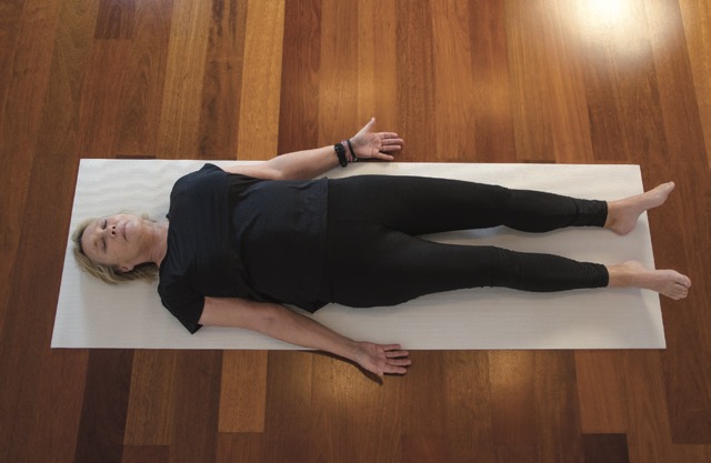 Stay in this relaxing pose for as long as you like. While you’re here, scan through your body. How does each part feel? What sensations or thoughts go through your mind as you lie there?
