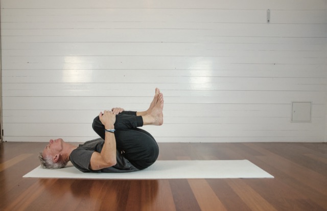 When you’ve finished, lie down onto your back.